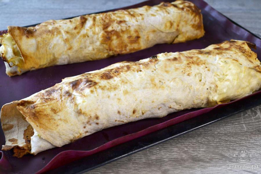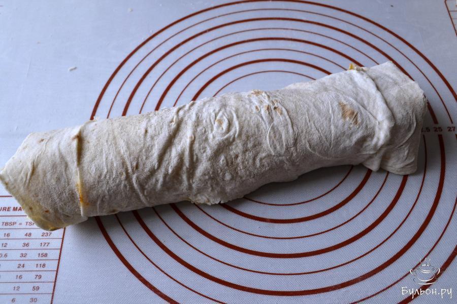 7. Запекать рулет в заранее разогретой до 180 градусов духовке, до румяной корочки, примерно 25 минут.