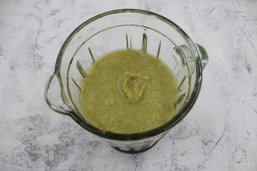 6. Измельчить суп в стационарном блендере или же использовать для измельчения погружной блендер. Получившуюся массу вернуть в ковшик.