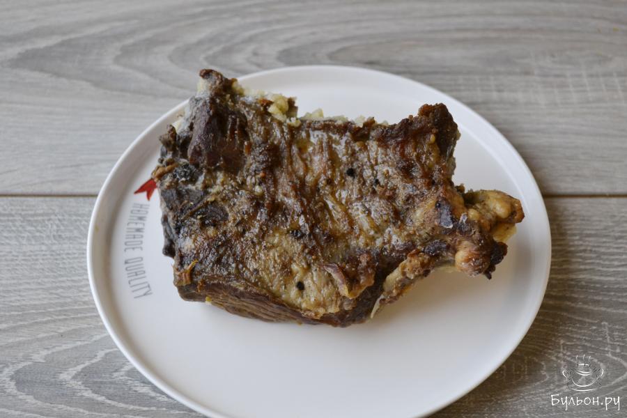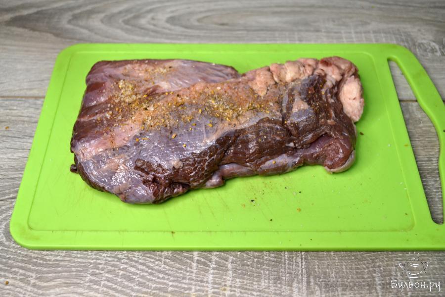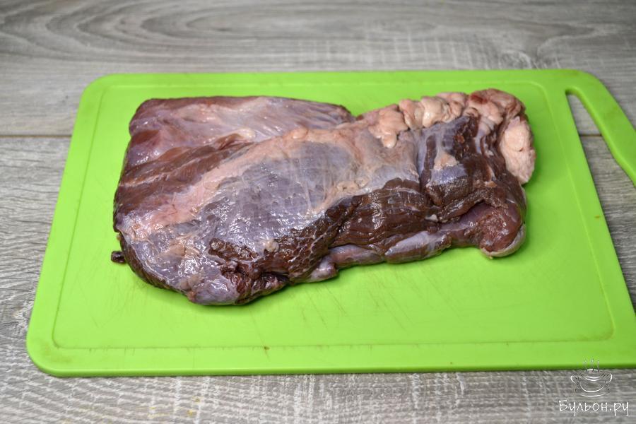 1. Кусок мяса обмыть и обсушить бумажным полотенцем. Для запекания лучше всего использовать шейную часть говядины.