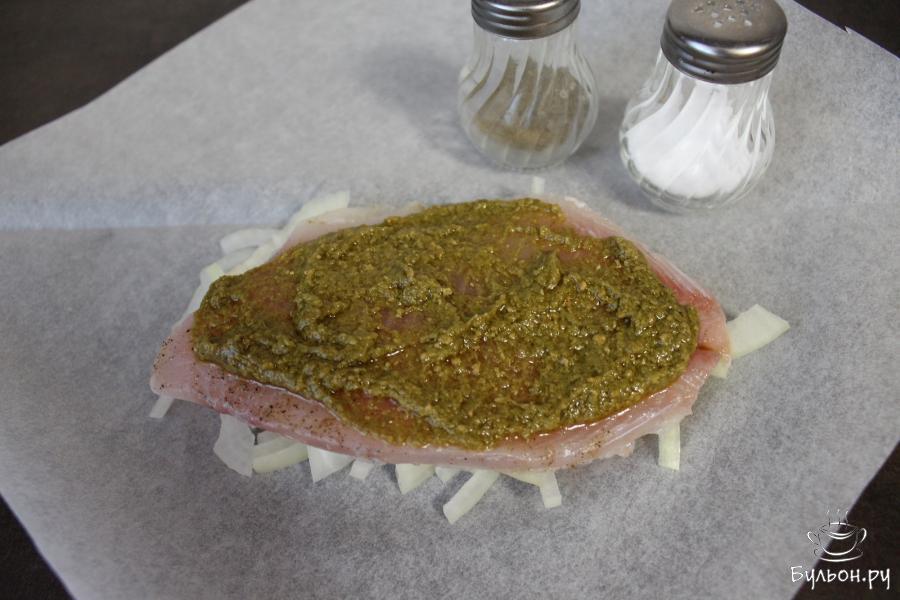 Соус песто очень популярен, он обладает очень ароматным приятным вкусом, который подходить ко многим блюдам. Чаще, конечно, этот соус используется для приготовления пасты, однако сегодня я предлагаю приготовить тилапию под соусом песто в пергаменте. При таком приготовлении рыба получается очень нежной, а благодаря соусу песто, очень ароматной. Ко всему прочему данное блюдо подойдет людям, следящими за своим питанием, поскольку данная рыба получается диетической.