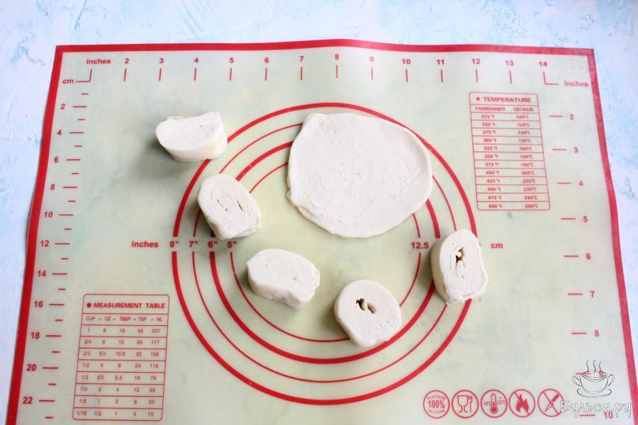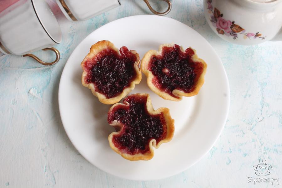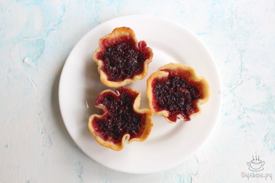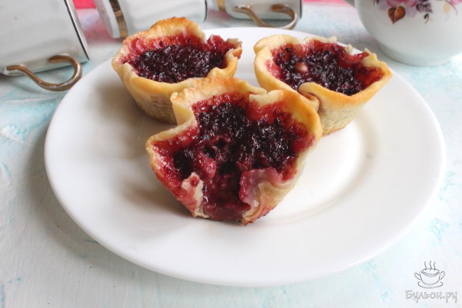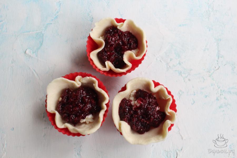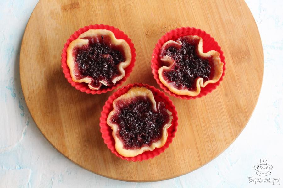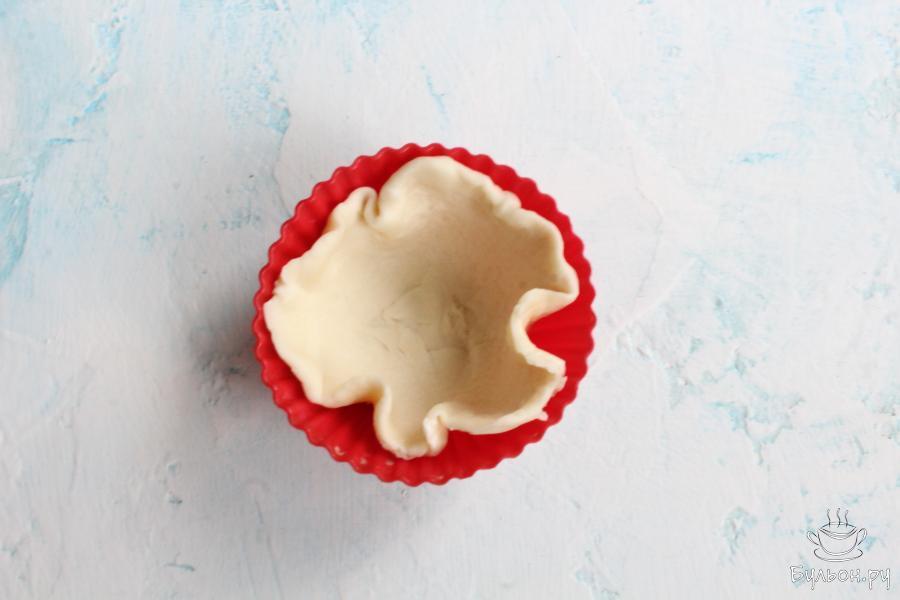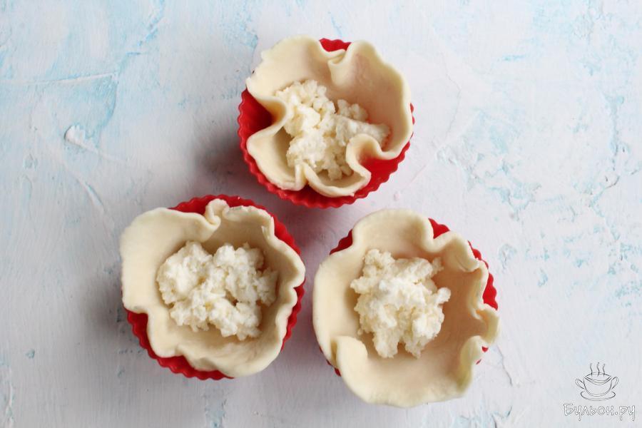 1. Слоеное тесто разморозить. Отделить от теста столько кусочков, сколько задумали приготовить корзиночек.