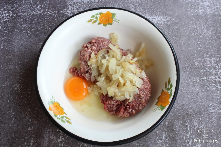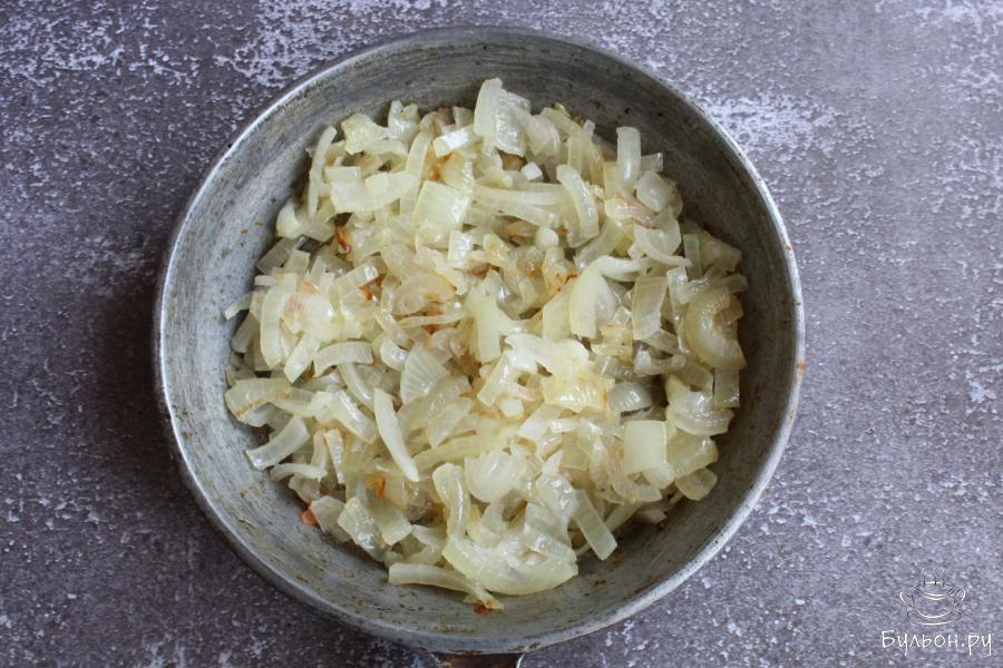 1. Лук почистить, промыть и мелко нарезать. Обжарить лук до мягкости на сковороде с разогретым маслом.
