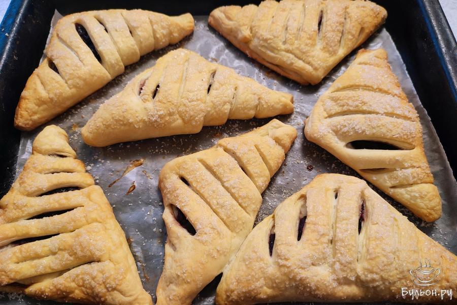 9. Отправить выпекаться в духовой шкаф на 25 минут, при температуре 180 градусов. Готовые слойки подать со свежезаваренным чаем.