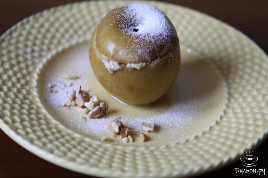 7. Яблоки запеченные с творогом готовы. Перед подачей яблоки присыпать сахарной пудрой. Подавать блюдо можно как в теплом, так и холодном виде. Приятного вам аппетита.