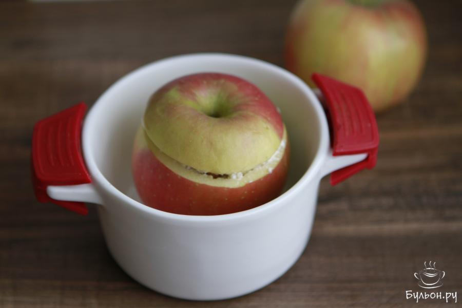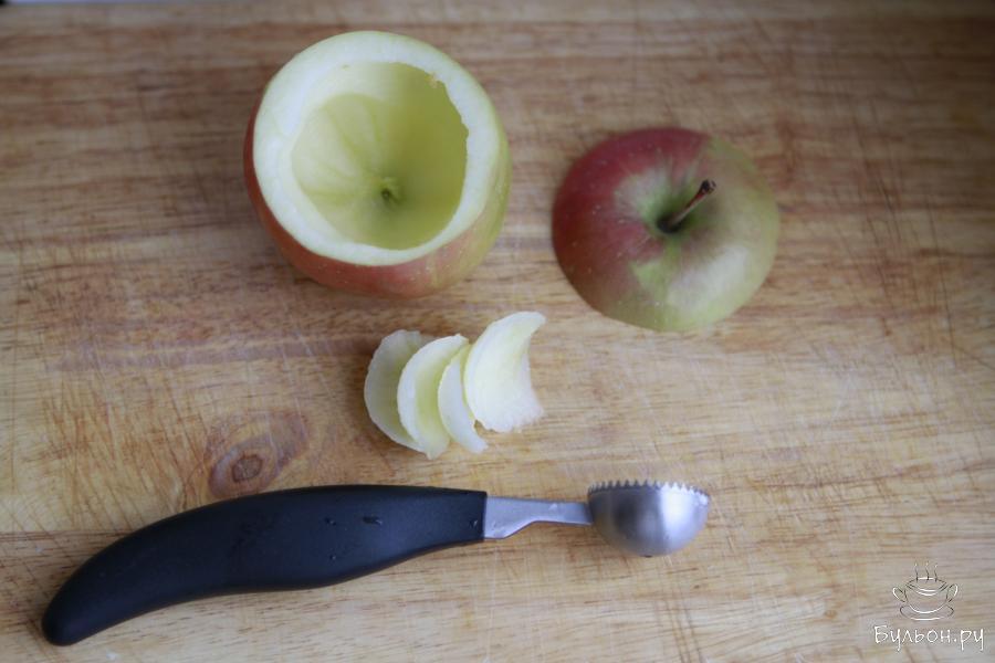 2. Яблоки помыть и обсушить. С яблок срезать крышечку и аккуратно удалить сердцевину и косточки. Дно яблок должно остаться целым.