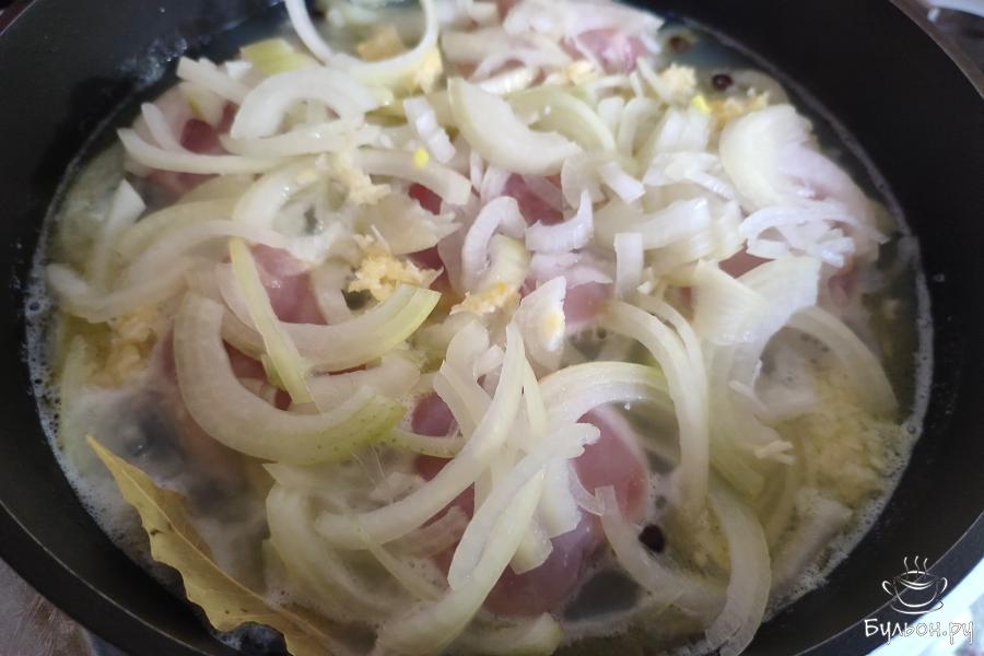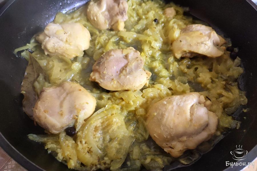 6. Накрыть крышкой и тушить блюдо на умеренном пламени пол часа. Готовые, горячие бедрышки с луком подать к столу.