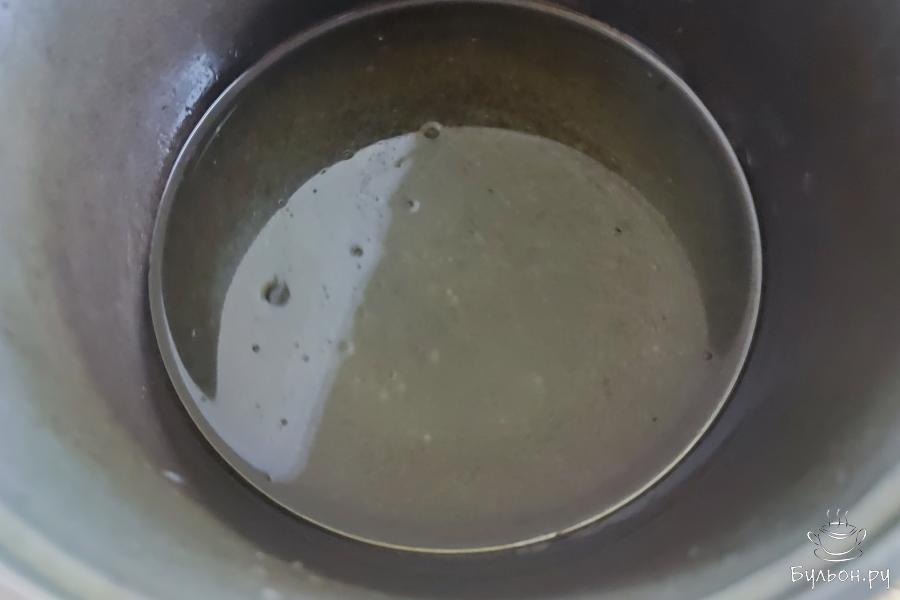 1. В жаропрочную посуду с антипригарным покрытием налить воду, растительное масло и добавить маленькую щепотку соли. Довести до кипения.