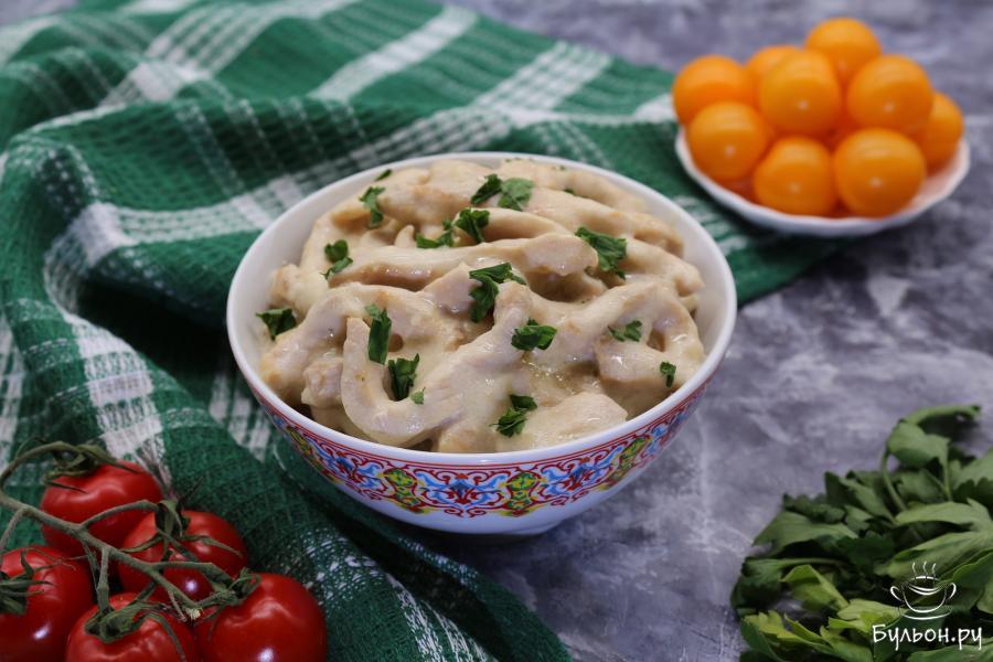 Если вы не любите сухое мясо, а предпочитаете сочные, нежные мясные блюда, то приготовьте быстрое, легкое в приготовлении и очень вкусное блюдо. Это кусочки свинины в сметанном соусе. Они сделают любой гарнир вкусным, сочным и нежным. Сметану используйте жирную 20-25 процентов, качественное сливочное масло. Для украшения блюда используйте любую зелень, лично я использовала петрушку. Обращу внимание, что соус получается средней густоты, поэтому, если хотите сделать его чуть пожиже, просто добавьте в соус меньше крахмала.