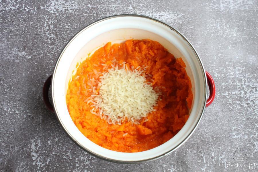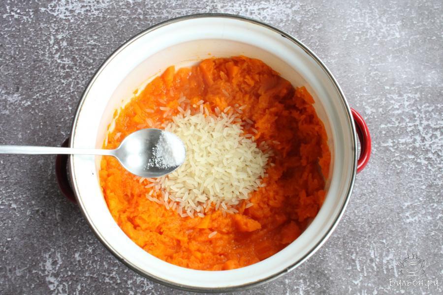 4. Добавить к тыкве соль. Если тыква попалась не сладкая, то можно добавить в кашу и сахар по вкусу.