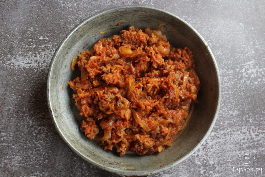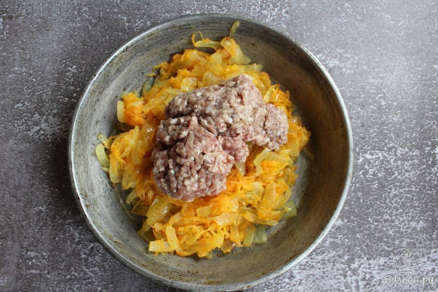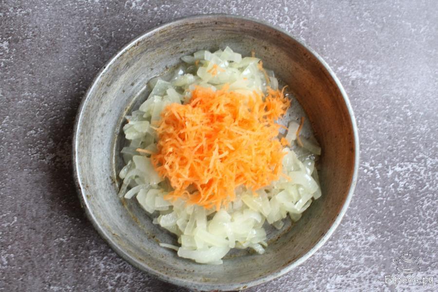 2. Лук и морковь почистить, промыть. Лук нарезать мелко, морковь перетереть через мелкую терку. Обжарить овощи на сковороде с разогретым маслом 5-6 минут до мягкости.