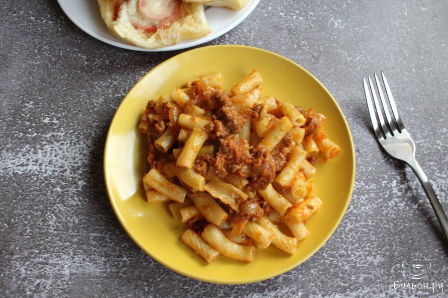 Всем знакомое с детства блюдо можно приготовить немного по-новому. Макароны по-флотски с фаршем и томатной пастой отличаются по вкусу от классической версии. Томатная паста делает их более сочными, яркими и аппетитными. Готовится блюдо на скорую руку. Такие макароны можно дополнить своими любимыми пряностями и душистыми травами. Фарш для приготовления подойдет как чисто говяжий, так можно использовать и смешанный фарш. Попробуйте приготовить макароны по-флотски по этому рецепту, наверняка вам понравится и такой вариант.