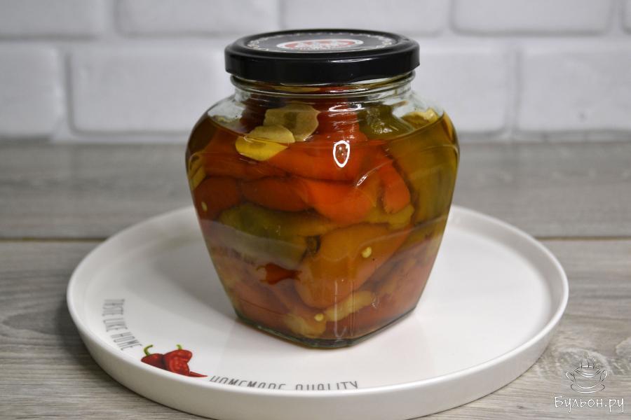 Я открыла для себя рецепт очень вкусной закуски - маринованный сладкий перец. Такой перец можно приготовить на зиму. Для закуски лучше всего подойдут экземпляры толстостенные, мясистые. Для красивой подачи лучше взять перец разных цветов: желтый, красный, зеленый. Болгарский перец сначала нужно запечь в духовке, чтобы легко было снять кожицу. Затем, очищенным перцем заполнить небольшие баночки, залить маринадом и стерилизовать в кастрюле. В стерилизованные баночки добавить уксус и закатать. Подавать такой маринованный перец можно, как самостоятельную закуску, или приготовить с ним мясной салат или добавить при готовке мясных блюд. Перец очень вкусный! Если вам интересны блюда из болгарского перца, попробуйте приготовить, рецепт того стоит.