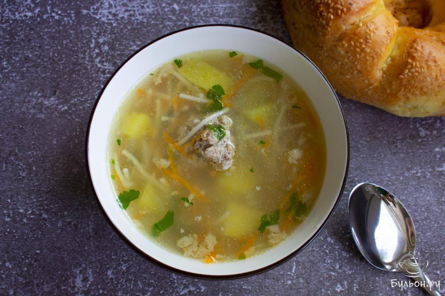Любителям легких и быстрых горячих супов предлагаю приготовить ленивый суп с фрикадельками и вермишелью. Суп готовится действительно очень быстро, фрикадельки не нужно формировать, будем выкладывать их ложкой. Такой суп можно предложить не только к повседневному столу, но и людям придерживающихся диетического питания. Суп получается вкусный, ароматный, он простой, но очень аппетитный. Если у вас нет времени долго стоять у плиты, этот рецепт вас выручит.