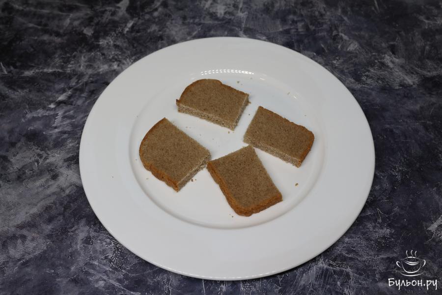 2. Хлеб нарезать на 4 части. В такое блюдо желательно добавлять черствый хлеб, а не свежий, только что испеченный.