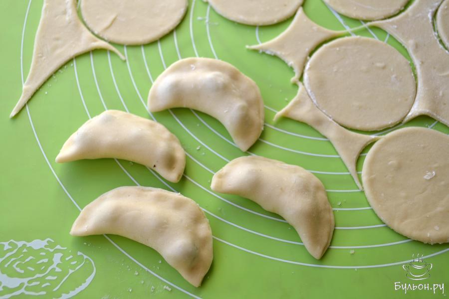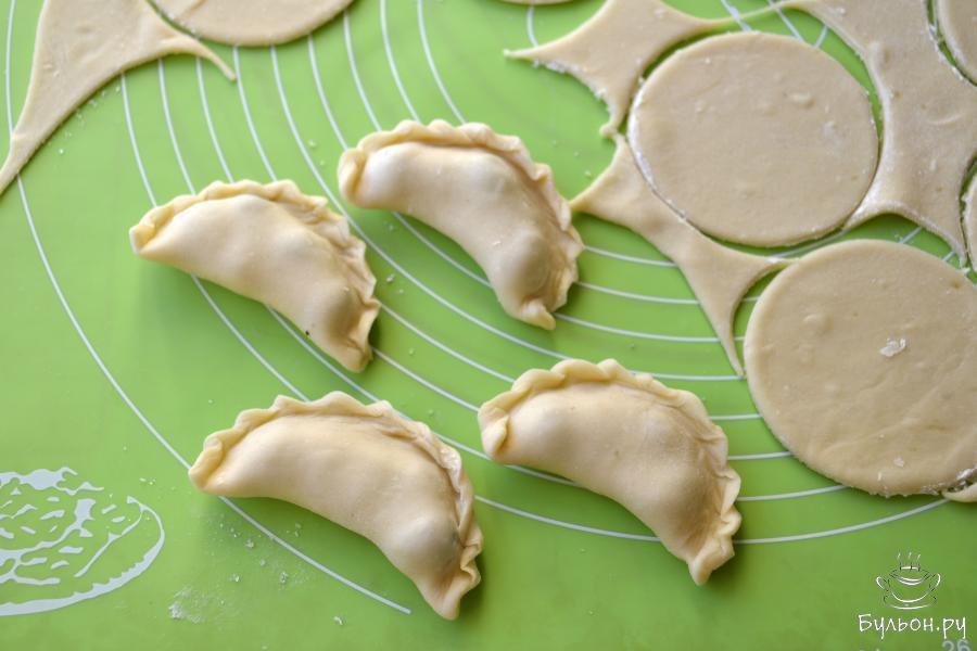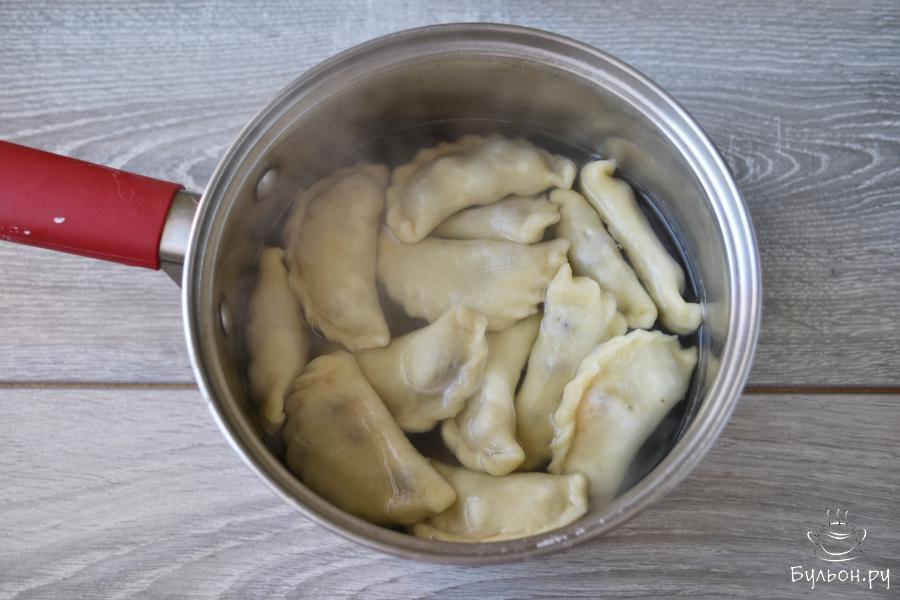 10. Чтобы сварить вареники, вскипятить подсоленную воду в кастрюле и опустить, по одному, вареники. Аккуратно перемешать и с момента закипания варить 4-5 минут. Если вареники не замороженные, то варить их нужно на 1-2 минуты меньше.