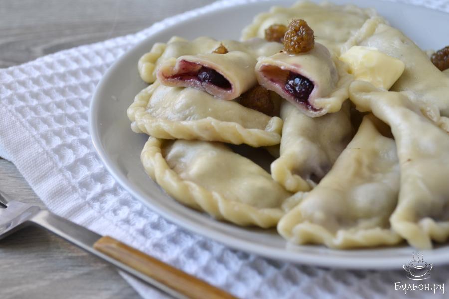 11. Готовые вареники выловить шумовкой из кастрюли и подать к столу со сметаной, маслом, вареньем. Приятного аппетита!
