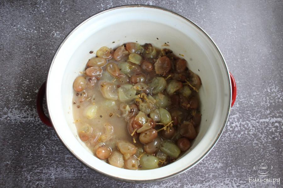Пряный соус из светлого винограда, желательно готовить из винограда кислых или пресных сортов. Такой соус можно приготовить с кусочками ягод, тогда виноград нужно выбирать без косточек, убрать все веточки и не протирать соус через сито. По желанию в этот соус можно добавить имбирь, другие душистые травы, сделать соус не острым. Лимонный сок можно заменить яблочным или винным уксусом. Такой соус можно приготовить и из темного винограда. Соус отлично подходит к мясным деликатесам, сырам.