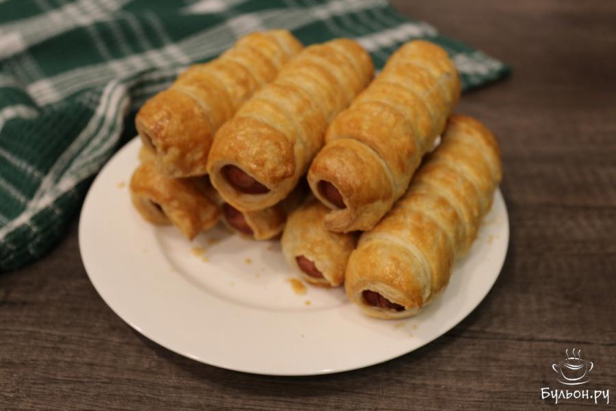 Сосиски в слоеном тесте обожают не только дети, но и взрослые уплетают их с огромным удовольствием. В слоеном тесте они готовятся за считаные минуты и так же быстро будут выпекаться в духовке. В итоге все получается быстро, просто и очень вкусно. Сосиски получаются в золотистом, хрустящем и воздушном тесте. При подаче сосисок на стол, можно подать к ним кетчуп или соусы, например, томатный или горчичный.