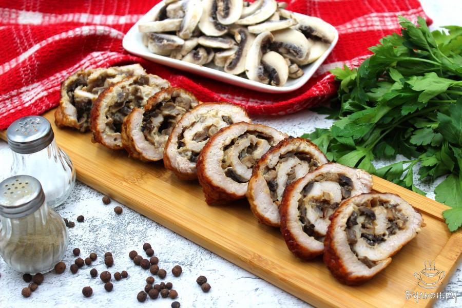 Свиной рулет с плавленым сыром и грибами можно приготовить не только на ужин, но и на праздничный стол. Такое блюдо точно будет смотреться очень выгодно, а само сочетание продуктов беспроигрышное. При желании в грибной сезон шампиньоны можно заменить на лесные грибы. Для приготовления этого блюда я советую покупать свиной карбонад и зачищать его от жира. Плавленый сыр лучше покупайте в ванночках, а не в маленьких брикетиках.