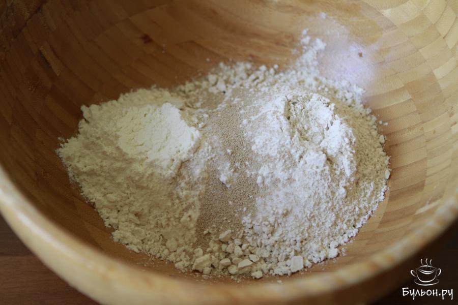 Багет из двух видов муки - это багет домашнего приготовления, который выпекается из пшеничной и овсяной муки. Багет смело можно назвать визитной карточки французской кухни. Корочка у настоящего багета должна быть хрустящий, а мякиш мягкий и в дырочку. Существует огромное множество рецептов приготовления багетов. Тесто на багет замешивают на закваске, свежих и быстро действующих дрожжах, из разной муки. Добавляют в него каперсы, оливки, семечки, овощное пюре. Предлагаемый вариант рецепта - базовый и по желанию его легко можно изменить.