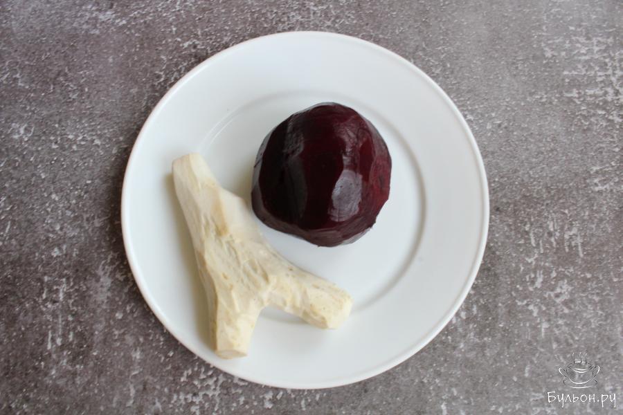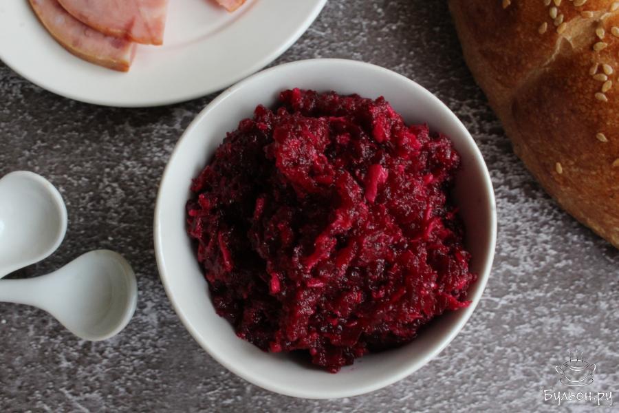 Домашний хрен со свеклой - это острая, бодрящая закуска, которая подойдет ко многим вторым блюдам, мясным деликатесам и даже просто, как постная или вегетарианская приправа для любителей острых соусов. Готовится закуска просто. Такую закуску можно приготовить как с вареной, так и с сырой свеклой. У каждой хозяйки есть свой рецепт домашнего хрена, кто-то добавляет воду, чтобы приправа была сочнее, кто-то не добавляет масло, все варианты вкусные. Приготовьте домашний хрен по этому рецепту и попробуйте такую приправу, наверняка она понравится вам.
