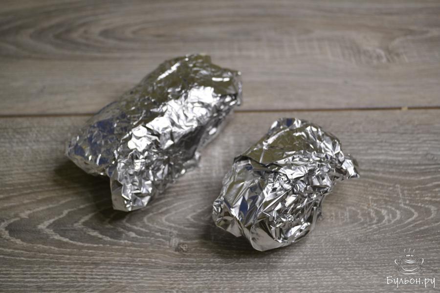 5. Завернуть каждую картофелину в фольгу, положить на противень и поставить в духовку, заранее разогретую до 180 градусов.