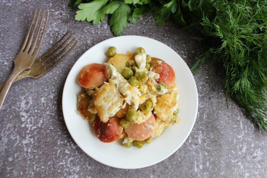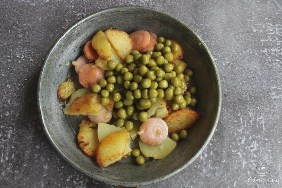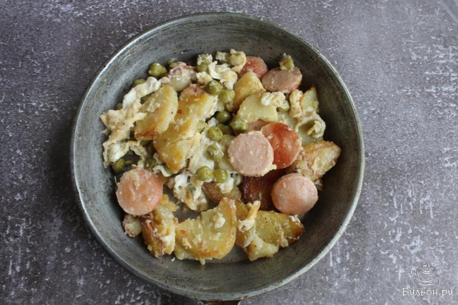 Картошка с сосисками, зеленым горошком и яйцом - это отличный вариант для сытного завтрака, полдника или даже перекуса в течение дня. Готовится блюдо быстро и просто, а если у вас есть уже заранее отваренная картошка, то на приготовление уйдет буквально 15 минут. Блюдо получается сытное, вкусное, насыщенное и ароматное. Такую картошку можно дополнить измельченной ароматной зеленью, любимыми пряностями, все варианты будут радовать вас новым вкусом.