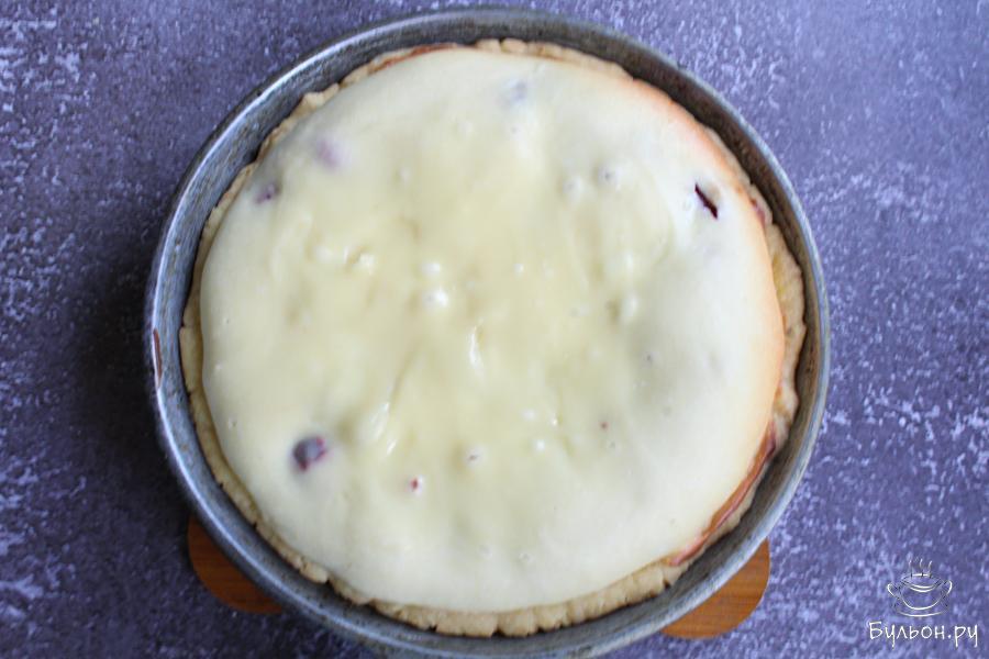 Нежный пирог с вишней под сливочной заливкой понравится всей семье. Готовится пирог просто и достаточно быстро. Пирог получается действительно очень нежный, легкий, с сочной и вкусной начинкой. Для приготовления можно взять свежую вишню без косточек, либо консервированную вишню в своем соку. Нужно иметь ввиду, что тесто пресное, поэтому если вы любите сладкие пироги и десерты, то в свежую вишню нужно будет добавить сахар, или сделать более сладкую заливку.
