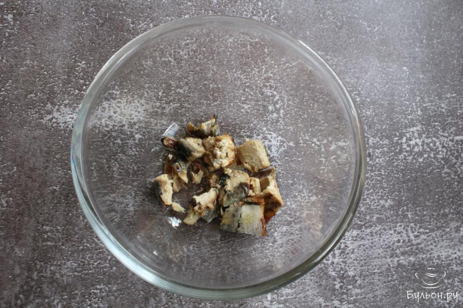 3. Рыбу достать из сока, разделить рыбу на небольшие кусочки, косточки убрать, если они есть. Выложить в миску.