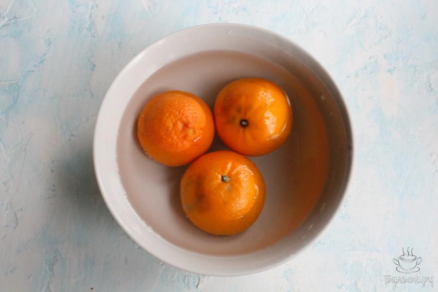 6. Доску или тарелку обернуть фольгой, выложить на фольгу мандарины и убрать ненадолго в холодильник