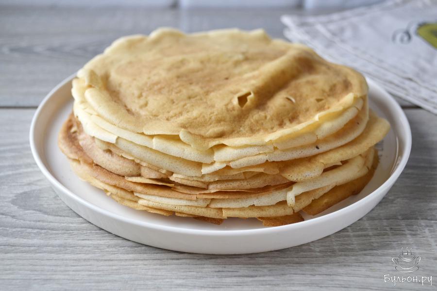 8. Испеките блины из всего теста. Испеченные блины подавайте со сметаной, маслом, вареньем, медом. Приятного аппетита!