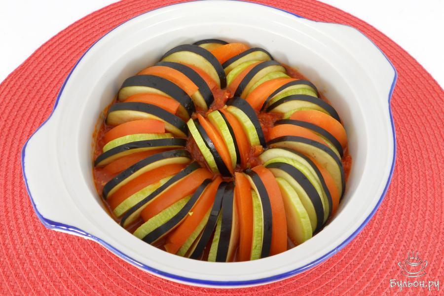 Рататуй - замечательное овощное французское блюдо, которое готовится совершенно просто. Изначально рататуй готовился без баклажана и это было распространенным блюдом бедных крестьян. Современный вариант рататуя включает в себя баклажаны, кабачки, помидоры, перец и обязательно прованские травы - они придают блюду неповторимый аромат и вкус. Интересна нарезка и формовка этого блюда. Обязательно попробуйте.