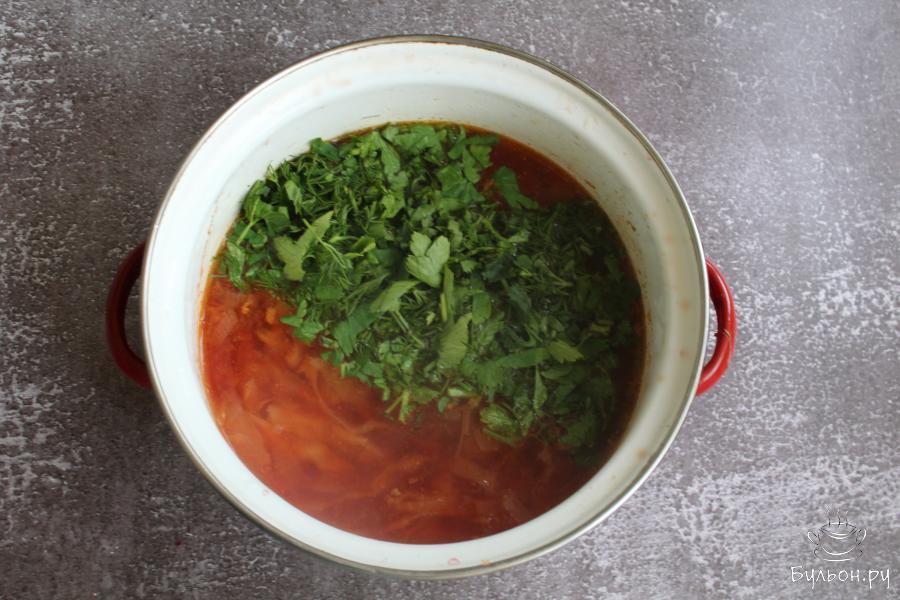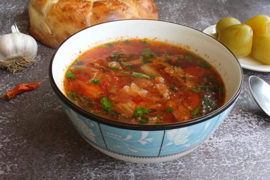 Постный борщ с капустой и солеными зелеными помидорами подходит не только для постного меню, такой суп можно предложить к вегетарианскому и веганскому столу. Борщ готовится просто, быстро, из доступных продуктов. Получается он яркий, ароматный, легкий и вкусный. Если вы любите, чтобы борщ был насыщенного свекольного цвета, то свеклу добавляйте в самом конце варки, а если вам нравится более красный борщ, то свеклу добавляем в начале. Количество ингредиентов можно менять в сторону своих любимых, зелень добавить ту, которая нравится. Борщ можно сделать острый.