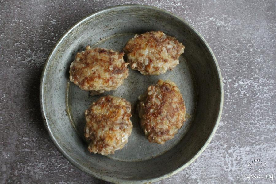 7. Сформировать из фарша котлеты. Жарить котлеты по несколько минут с двух сторон, на сковороде с разогретым маслом.