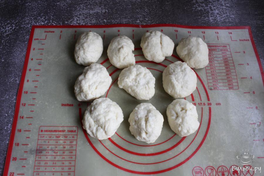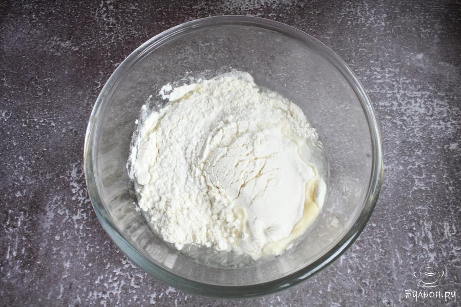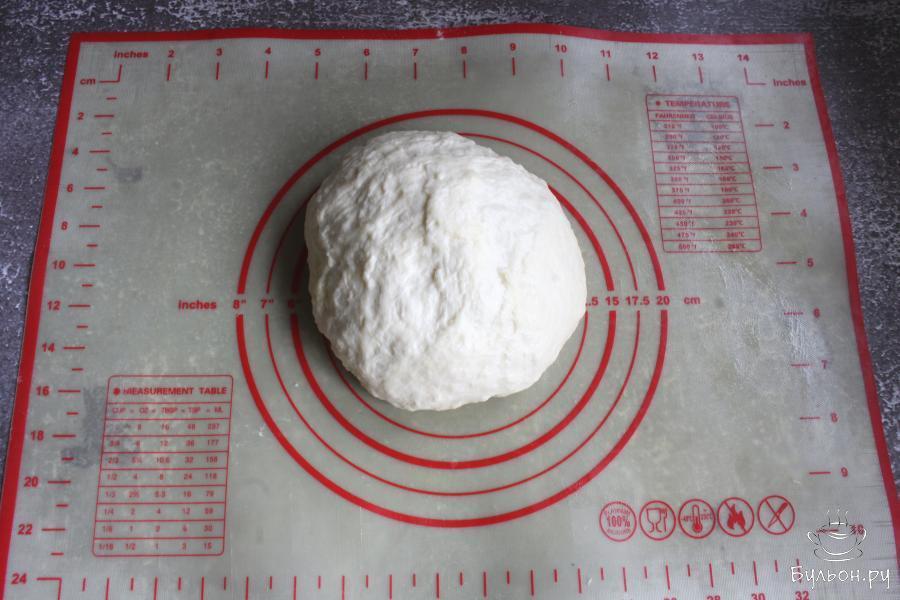 7. Добавить в чашку муку и замесить мягкое тесто. Муки может уйти немного больше, тесто должно быть мягким, не очень крутым.