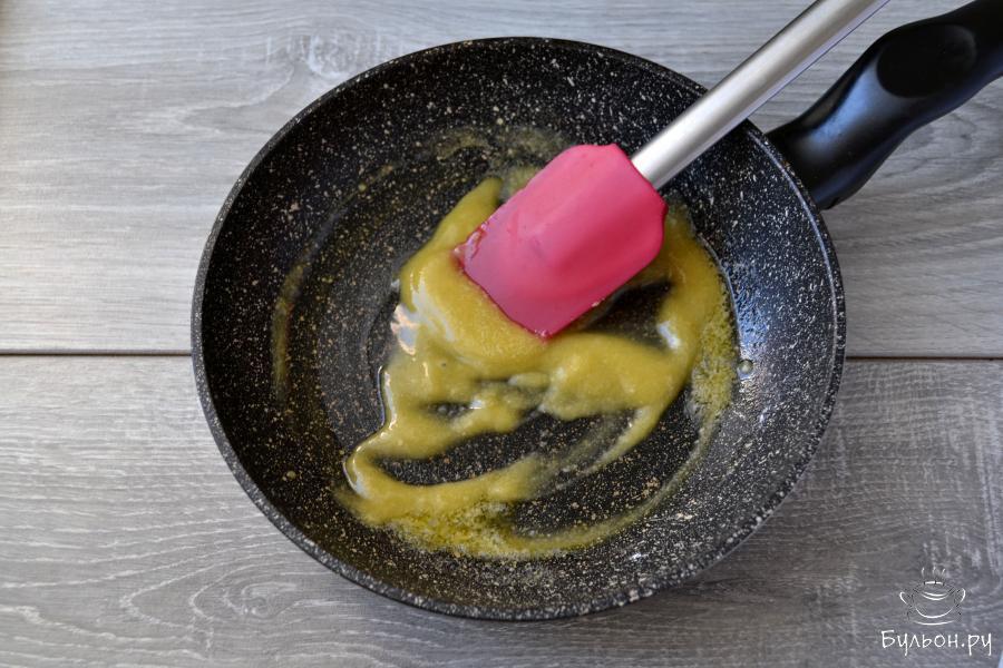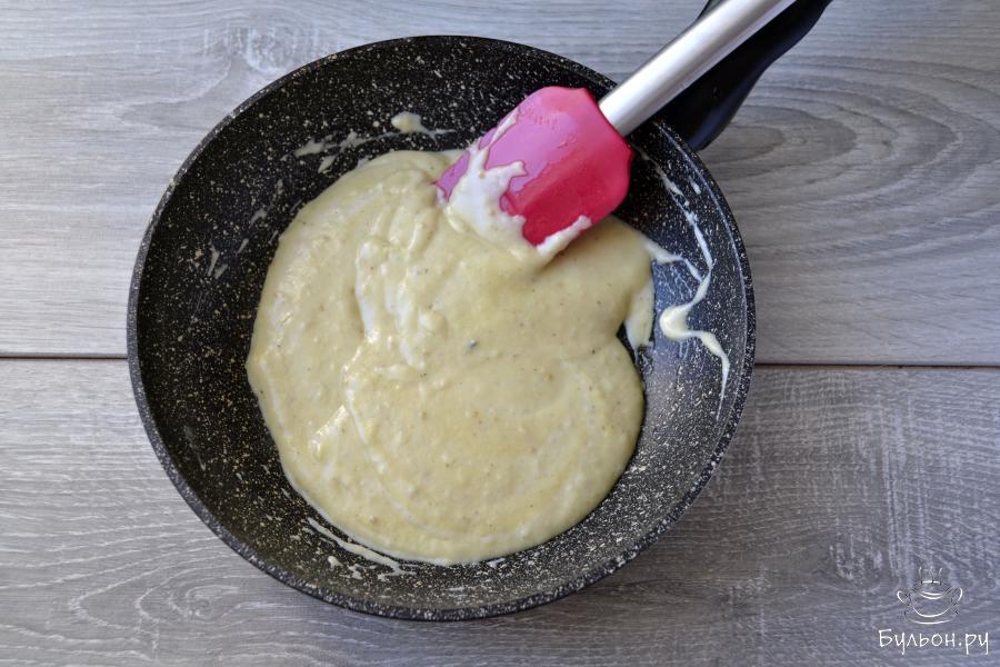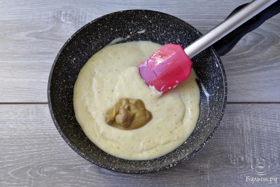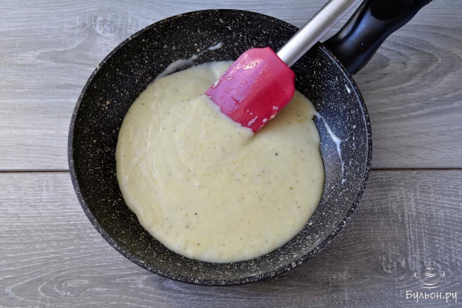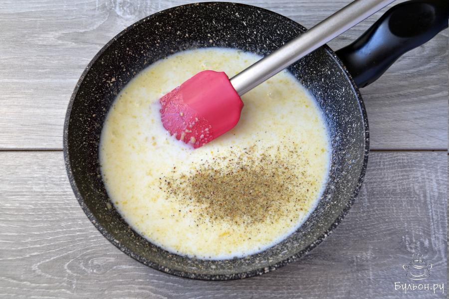 5. Поставьте сковороду на огонь, постоянно помешивая, доведите до кипения. Проварите соус пару минут и снимите с огня.