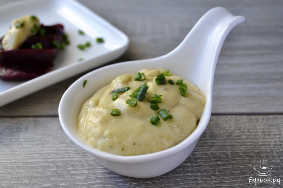 Соус с горчицей по-немецки делается на основе соуса бешамель, но в конце добавляется готовая горчица. Соус готовится очень быстро и просто. Он хорошо подходит для овощей, мяса, рыбы, такой универсальный соус с острым вкусом. Можно положить острую русскую горчицу или горчицу в зернах. Острота соуса будет зависеть от того, какой остроты горчицу вы используете. Если хотите более жидкий соус, возьмите побольше молока или чуть меньше пшеничной муки.