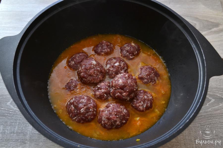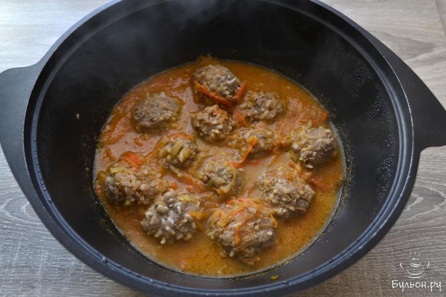 10. Горячие тефтели с овощами - это очень вкусное и сытное блюдо. Подать к столу, украсив зеленью. Приятного аппетита!