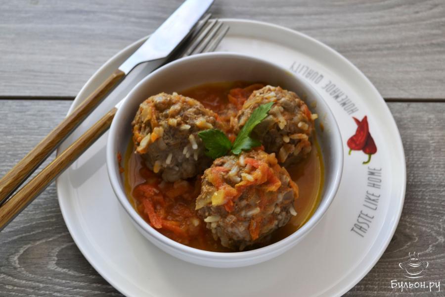 Блюда из фарша пользуются большой популярностью у хозяек, так как готовятся быстро, получаются вкусные и сытные, особенно, если использовать с фаршем свежие овощи.. Для тефтелей возьмите фарш, рис, лук. А овощную подушку, на которой потом тефтели будут тушиться - лук, морковь и томатную пасту. К таким тефтелям можно подать на гарнир картофельное пюре - получится очень вкусный обед или сытный ужин.