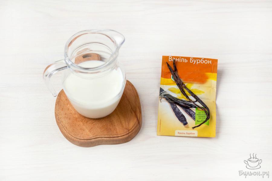 5. Соедините ваниль (или ванильный сахар, ванилин), молоко и сливки. На минимальном огне доведите смесь практически до кипения и сразу же выключите огонь. Готовить десерт можно как на основе молока, так и смеси молока и сливок, или только лишь сливок.