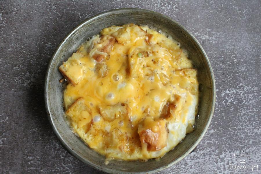 Яичница с луком, сыром и лепешкой хороша тем, что ее можно готовить, когда у вас остался вчерашний хлеб. Это может быть лепешка, батон, любой хлеб, который вы любите. Яичница получается сытная, насыщенная, нежная и очень вкусная. Готовится это блюдо быстро, его можно предложить к завтраку, полднику или даже перекусить такой яичницей в течение дня. Попробуйте приготовить яичницу по-новому и этот рецепт останется в вашей кулинарной копилке.