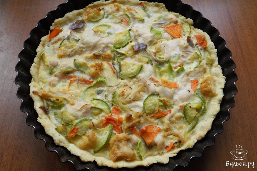 Киш - это открытый слоеный или песочный французский пирог с различными начинками. Предлагаю вам попробовать киш с овощами и курицей - отличное сочетание. Пирог получается необычайно вкусным, сочным и нежным. Хрустящая основа и легкая овощная начинка с добавлением куриного филе обязательно придется по вкусу и взрослым, и детям. Киш с овощами и курицей вкусен как в теплом, так и в охлажденном виде.