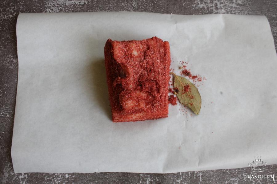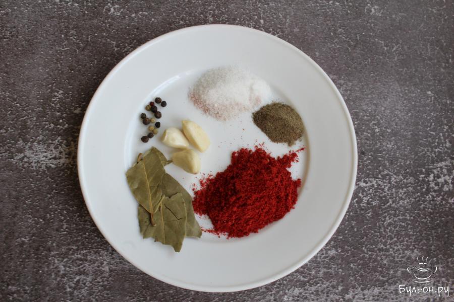 2. Приготовить сладкую паприку, черный молотый перец и горошек, крупную соль, лавровый лист. Чеснок почистить.