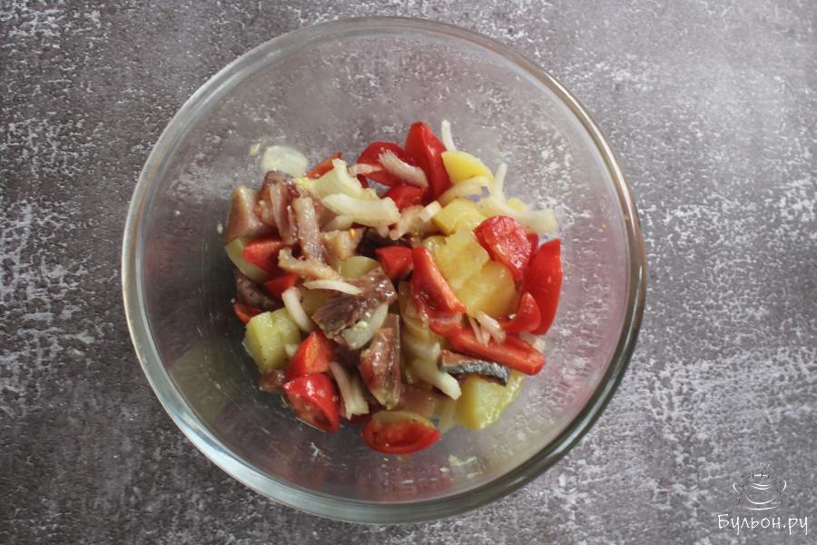 Очень вкусный салат с сельдью по-норвежски, порадует всех любителей рыбных салатов. Готовится салат быстро и просто, а получается он сытный, насыщенный, нежный и красивый. Помидоры, для приготовления такого салата, желательно выбирать сладкие, небольшого размера, мясистые и плотные. Если в ваших томатах много семечек, то семечки лучше убрать, чтобы салат не был излишне водянистым. Попробуйте приготовить такой салат, наверняка он понравится всей семье.