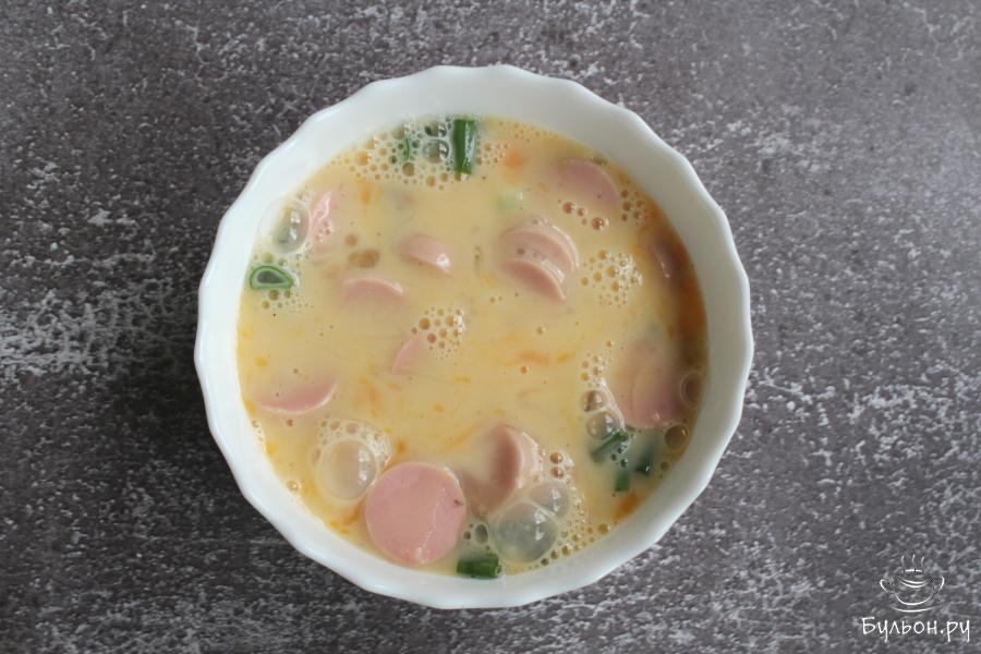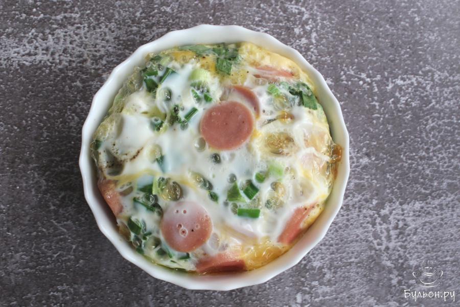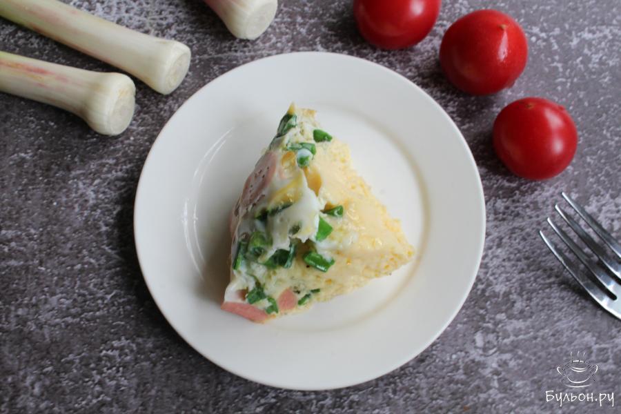 Когда хочется сделать завтрак из яиц по-новому, то попробуйте приготовить омлет с сосисками и зеленым луком в духовке. Омлет получается сочный, ароматный, легкий, но одновременно и сытный. Готовится омлет очень просто и быстро. Чтобы омлет был пышный, берите небольшую по диаметру форму. На это количество продуктов будет достаточно формы 12-15 см. в диаметре. Такой омлет вкусный как горячий, так и холодный.