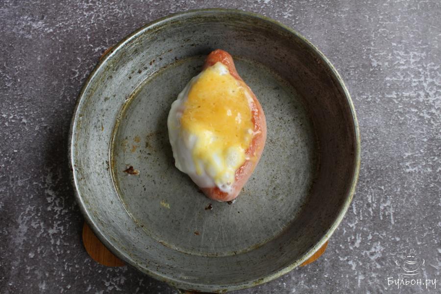 5. Накрыть сковороду крышкой и готовить яйцо, от двух минут и дольше. Время приготовления зависит от того, какой консистенции вам нужен желток.