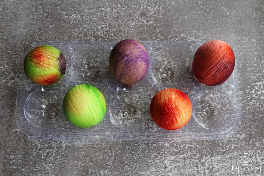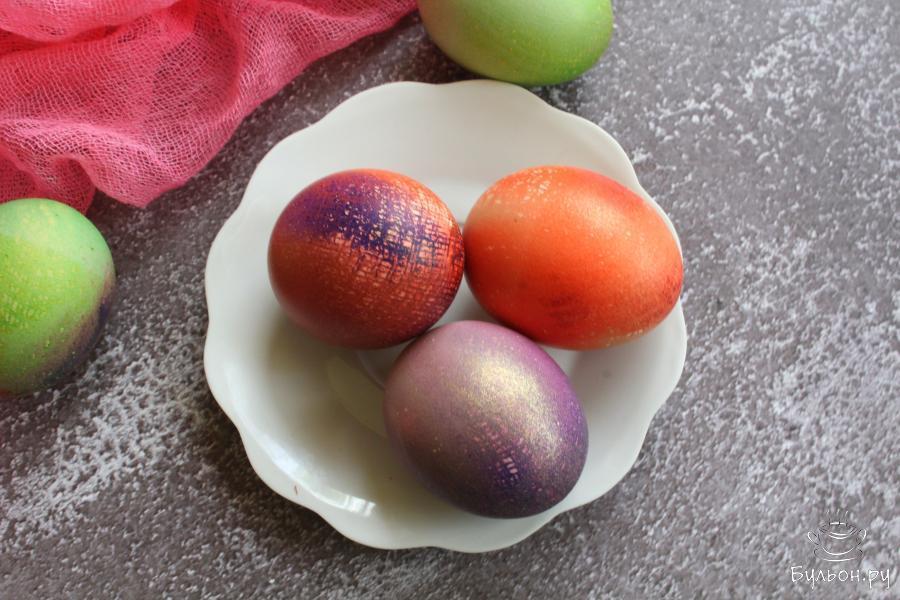 В этом году красим яйца с помощью красителей и марли, способ интересный, творческий и очень простой. Крашенки получаются красивые, необычные, яркие, они поднимут настроение в праздничные дни. Оттенки красителей каждый выберет сам, смешивать оттенки сплошное удовольствие, результат может получиться самый неожиданный и привлекательный. Если вы хотите нежные оттенки, используйте совсем немного красителя и побольше воды. Для удобства можно налить воду в пульверизатор.