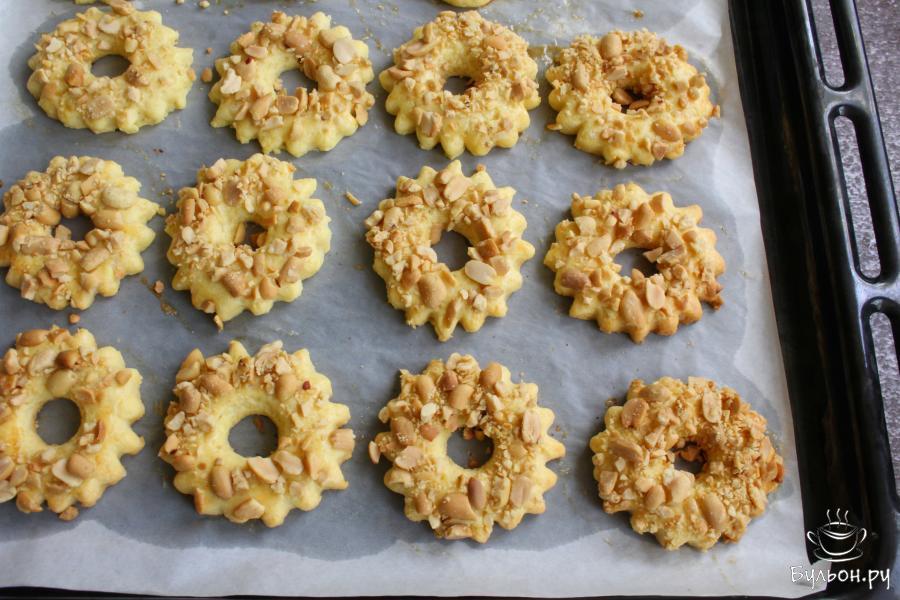 От этой выпечки просто невозможно оторваться, печенье рассыпчатое, мягкое, ароматное, в меру сладкое, а арахис добавляет печенью еще больше вкуса. Песочные кольца с арахисом многим знакомы с детства. Если же вы не пробовали такое печенье, попробуйте приготовить его в домашних условиях. Печенье Песочные кольца с арахисом по ГОСТу готовятся просто и быстро, из доступных продуктов. Если у вас нет специальной формы, то такое печенье можно вырезать металлическими формочками для корзиночек.