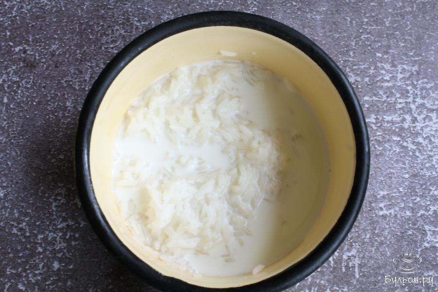 2. Затем добавить к рису молоко и варить до испарения молока. Нужно, чтобы получилась мягкая, густая, разваренная каша.
