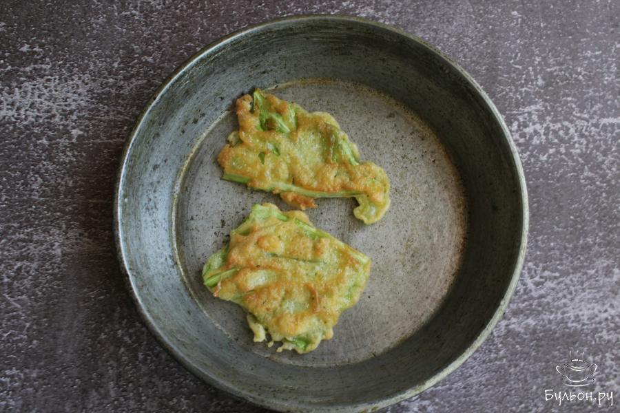 9. Жарить капусту с двух сторон на сковороде с разогретым маслом. Жарить до золотистого цвета, по минуте с каждой стороны.
